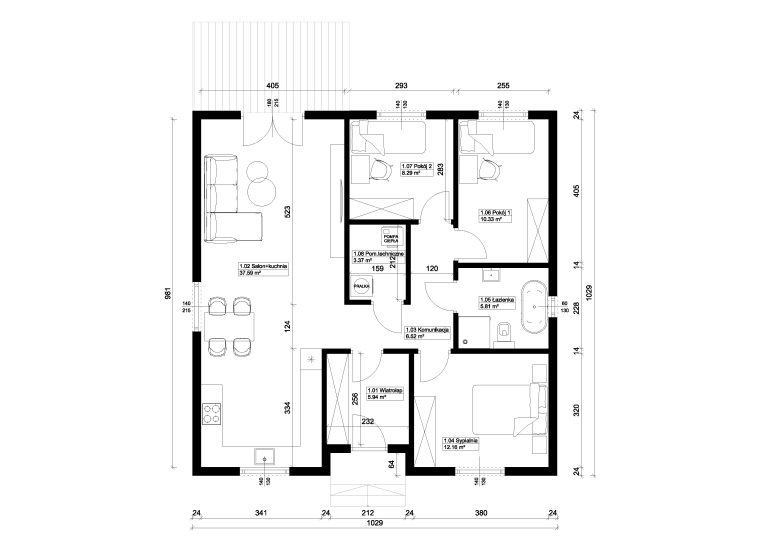 Jest to idealny projekt dla trzy lub czteroosobowej rodziny.
