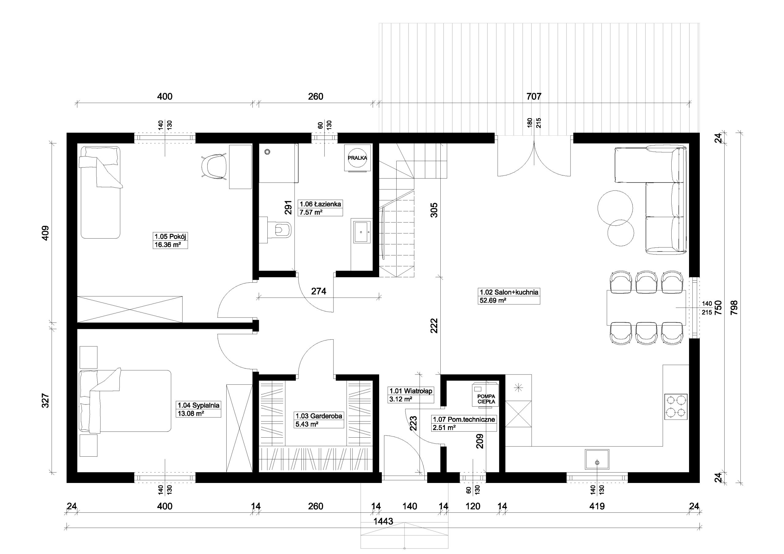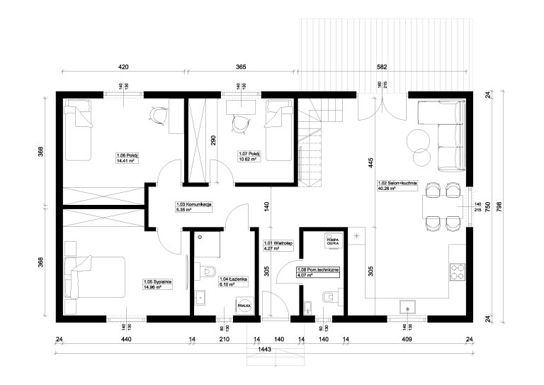 Nasze biuro projektowe pomoże Ci dobrać najbardziej optymalny układ pomieszczeń.