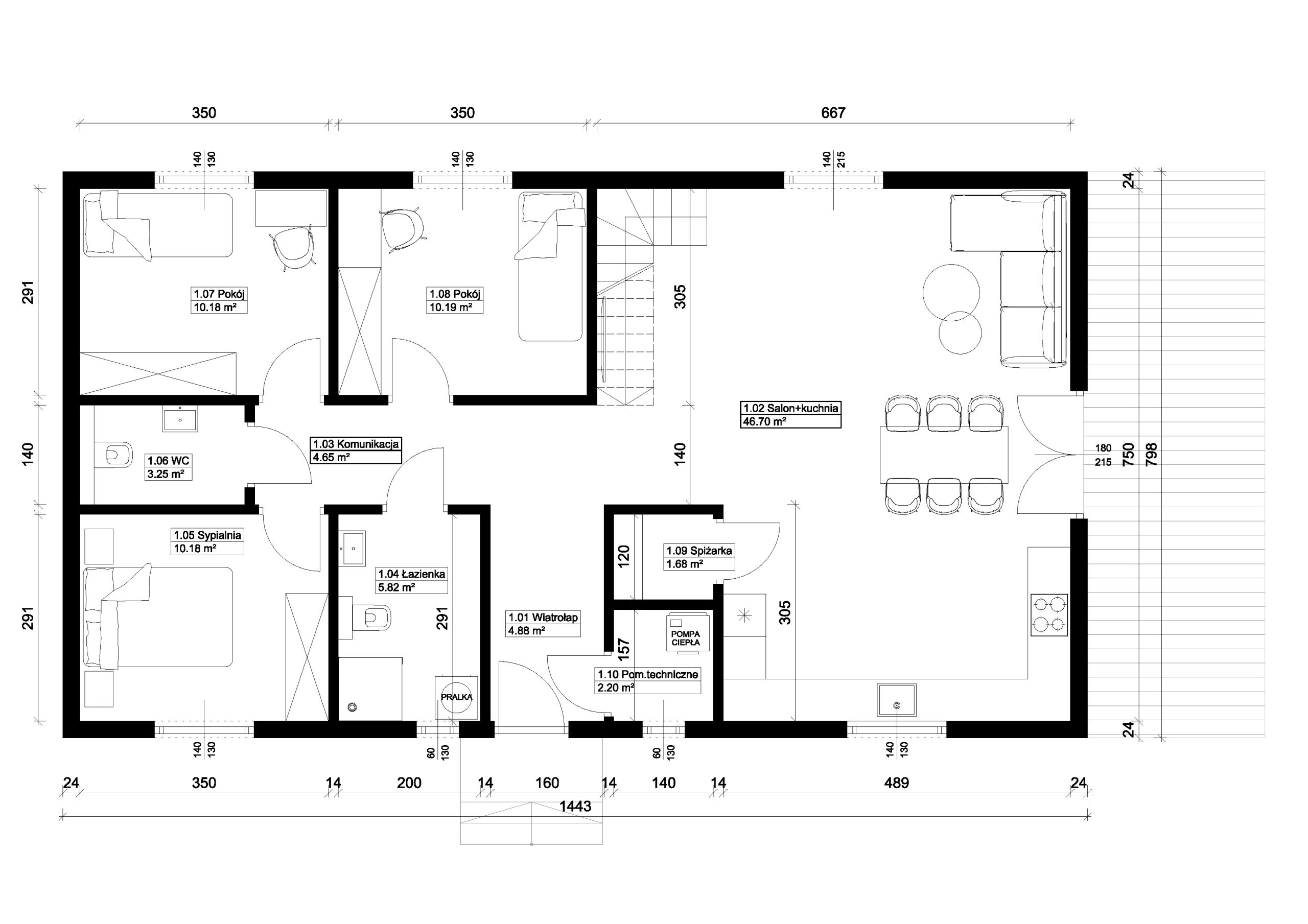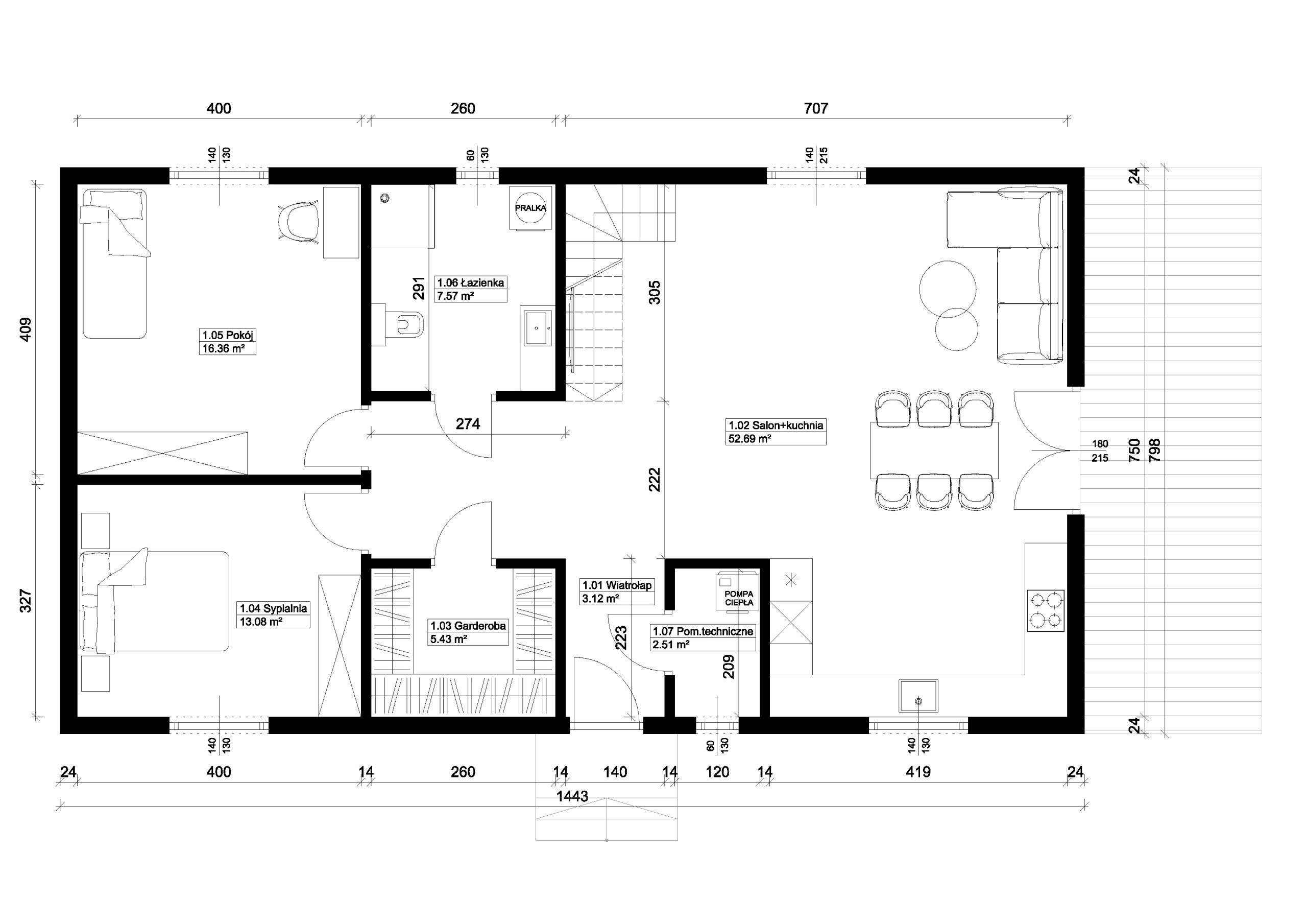 Jest to idealny projekt dla trzy lub czteroosobowej rodziny.