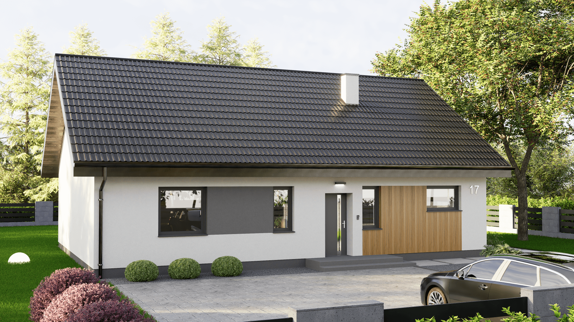 Dom charakteryzuje się klasyczną bryłą, która idealnie wpasuje się w każdą działkę, niezależnie od otoczenia.