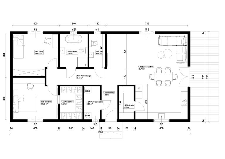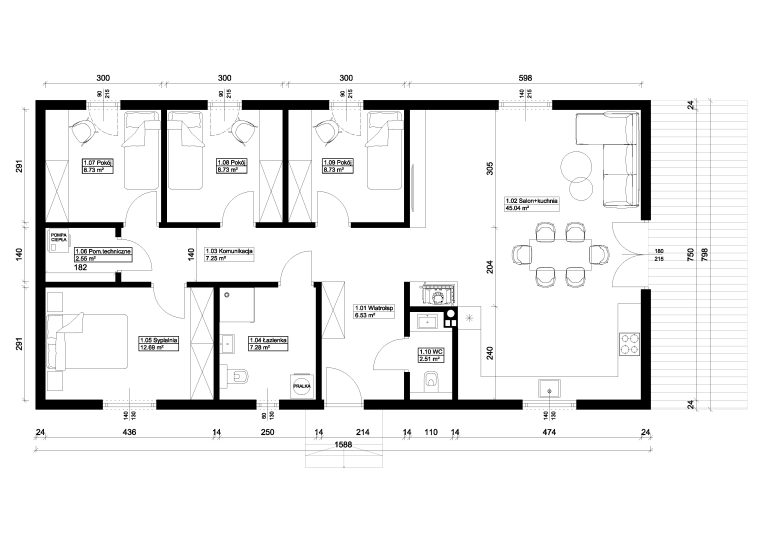 Nasza specjalna oferta daje Ci możliwość wyboru jednego z wielu gotowych układów pomieszczeń. Możesz również wprowadzać zmiany w układzie tak, żebyś spełnił Twoje potrzeby.