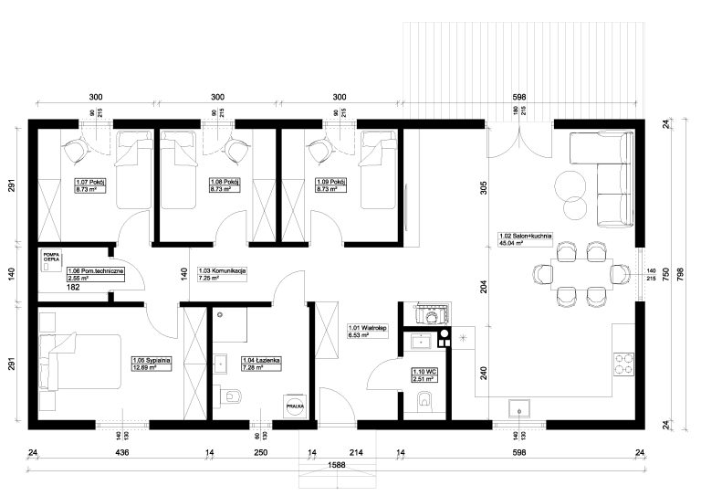 Nasze biuro projektowe pomoże Ci dobrać najbardziej optymalny układ pomieszczeń.