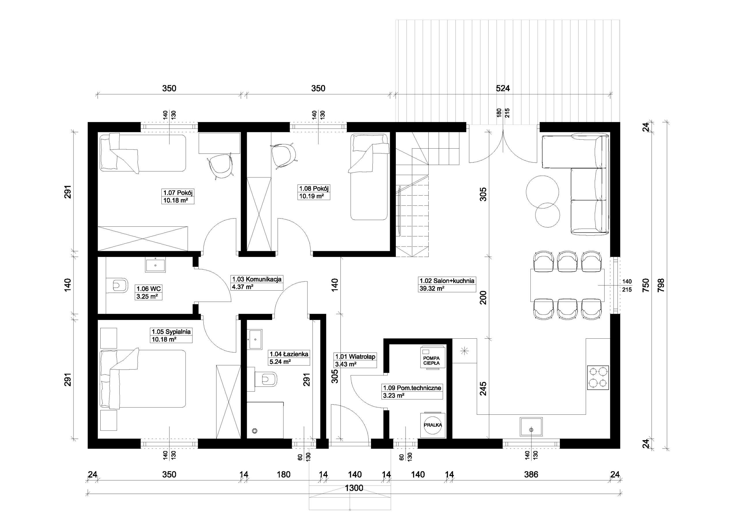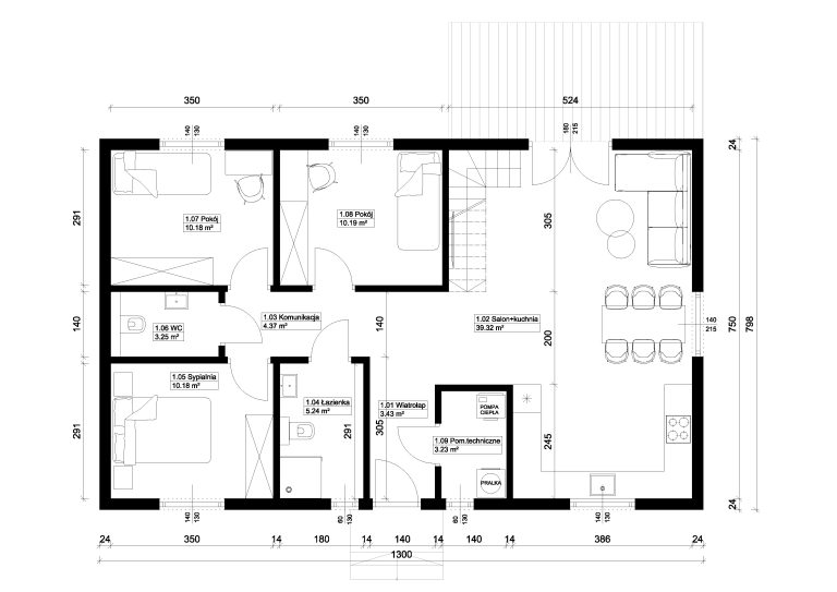 Nasze biuro projektowe pomoże Ci dobrać najbardziej optymalny układ pomieszczeń.