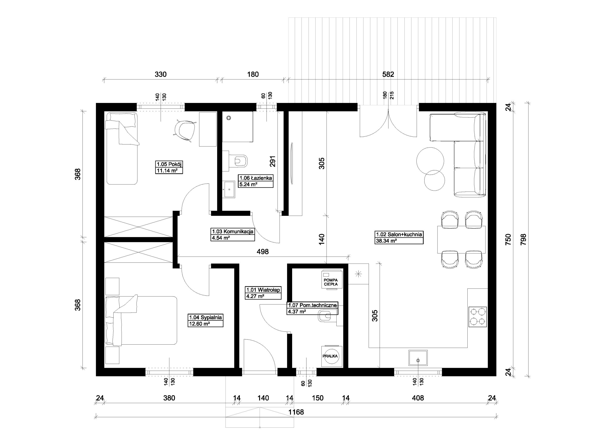 Nasze biuro projektowe pomoże Ci dobrać najbardziej optymalny układ pomieszczeń.